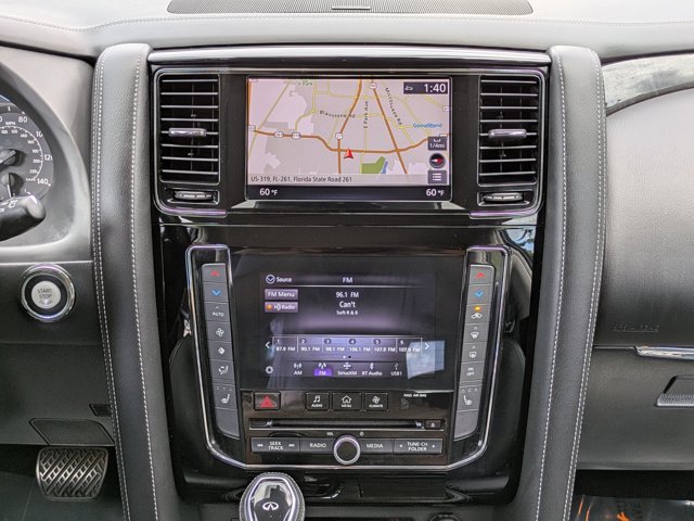 - Radio: AM/FM/HD w/Single In-Dash CD Player & MP3 -inc: INFINITI controller w/dual HD touch-screen, 8-inch upper and 7-inch lower displays, INFINITI navigation w/lane guidance and 3D building graphics w/INFINITI InTouch premier, INFINITI voice recognition for audio, navigation, Bluetooth and vehicle information systems, over the air updates for INFINITI InTouch and maps, Siri Eyes Free, Apple CarPlay and Android Auto, SiriusXM radio (subscription required) access, SiriusXM Traffic w/real-time traffic (subscription required) information access, SiriusXM Travel Link (subscription required) access to weather, fuel prices, stocks prices, sport scores, movie listings and parking, Bluetooth hands-free phone system and audio streaming, hands-free text messaging assistant, HD radio technology, Bose 13-speaker premium sound system w/driver's audio stage, Radio Data System, speed-sensitive volume control, 2 USB ports for compatible devices for audio streaming